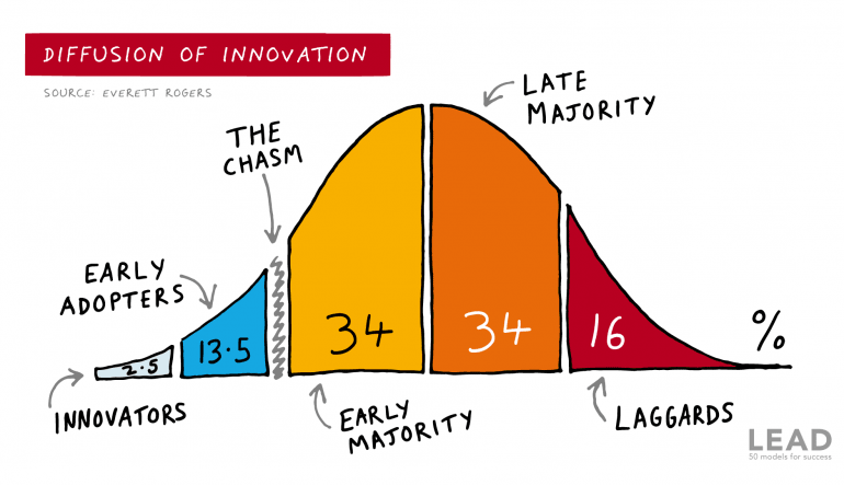 You are in the majority. But you have a choice of whether you move along with the early majority or stay behind with the late majority.